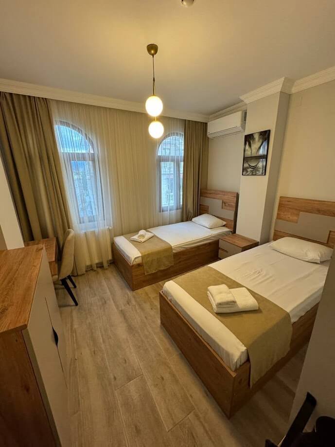 В каждом номере: ванная комната с душем, полотенца, фен, чайник, холодильник, кондиционер, ТВ со спутниковыми каналами, (для постоянных клиентов отеля – халаты). На этажах есть: гладильная доска и утюг. Номера в отеле: одноместный, двухместный, трехместный , четырехместный однокомнатный.
