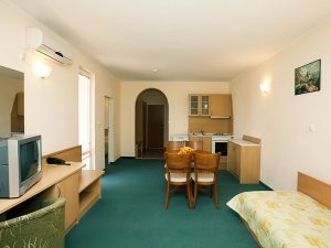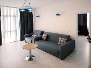 - Studio: Одно помещение с раскладным диваном + кухонный бокс. Макс. размещение: 2 взр.
