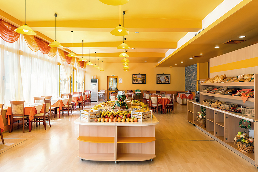 Инфраструктура отеля: открытый бассейн с детской секцией, детский бассейн, лежаки и зонтики возле бассейна, главный ресторан с летней террасой, бар у бассейна, детская площадка, детский клуб, обмен валюты, сувенирный магазин, парк, паркинг, Wi-Fi в лобби и номерах.