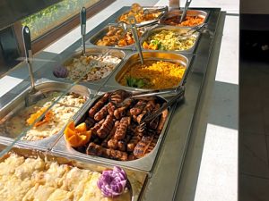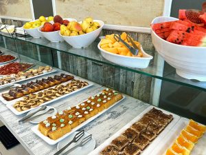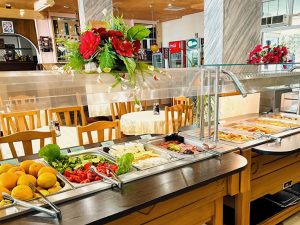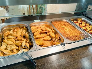 Завтрак — 08:00-10:00. Поздний завтрак — 10:30-11:00 — закуски, выпечка. Обед — 12:30-14:00. Полдник — 15:30-16:30 – пицца и мороженое. Ужин — 18:45-20:45.