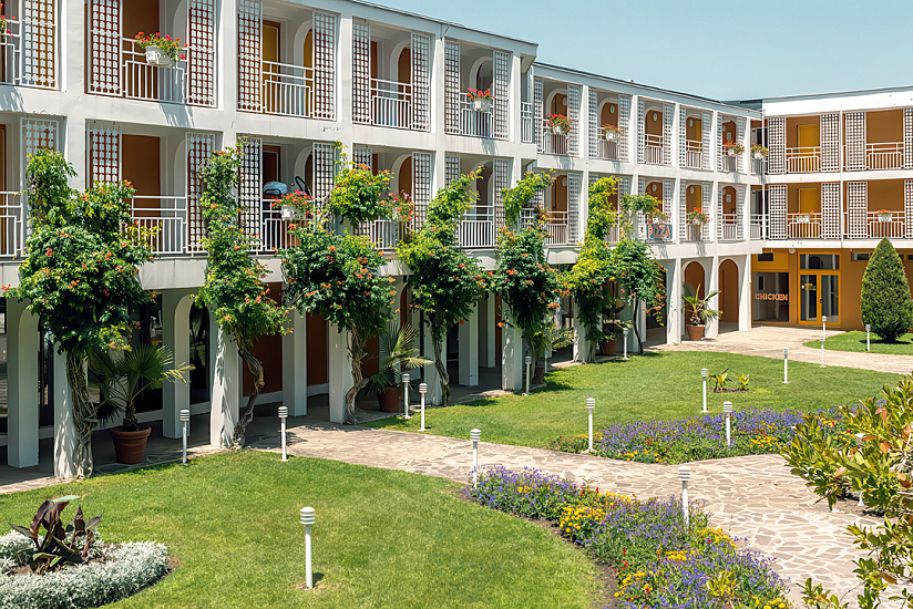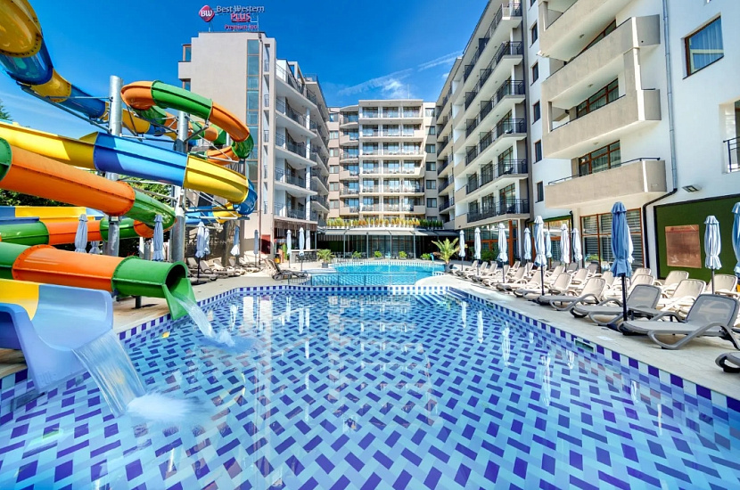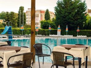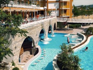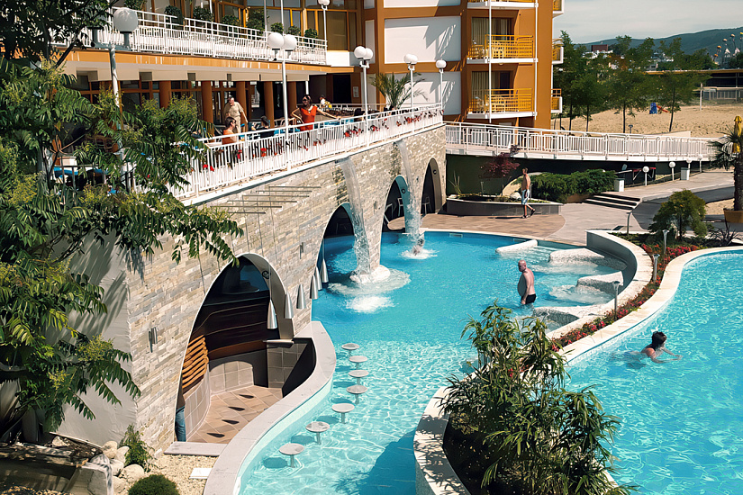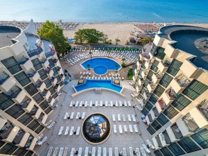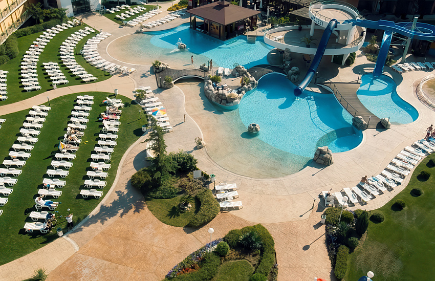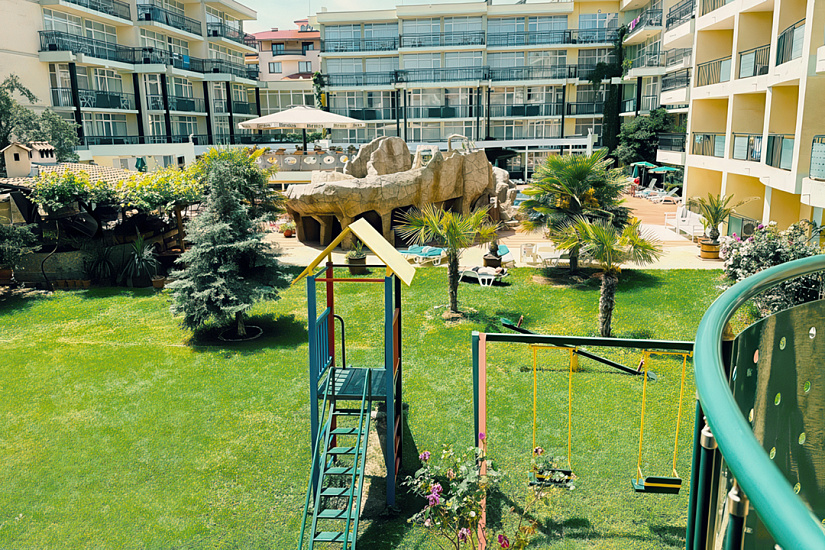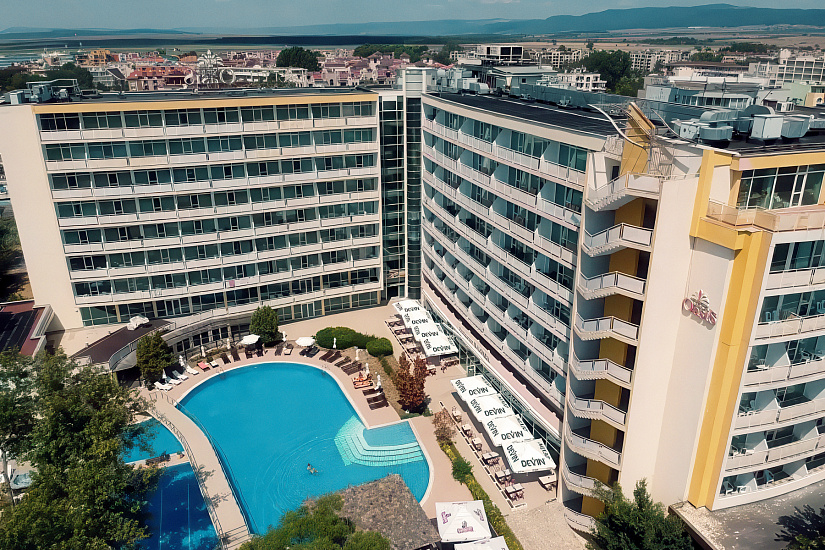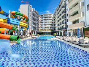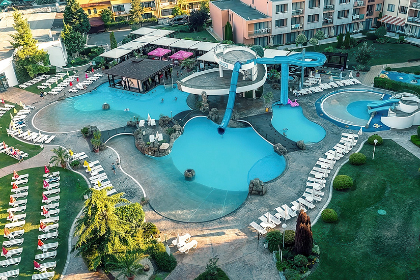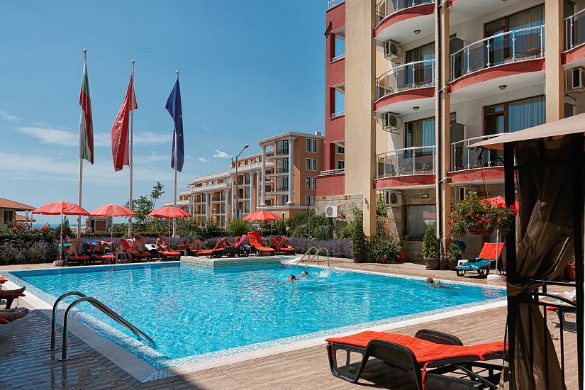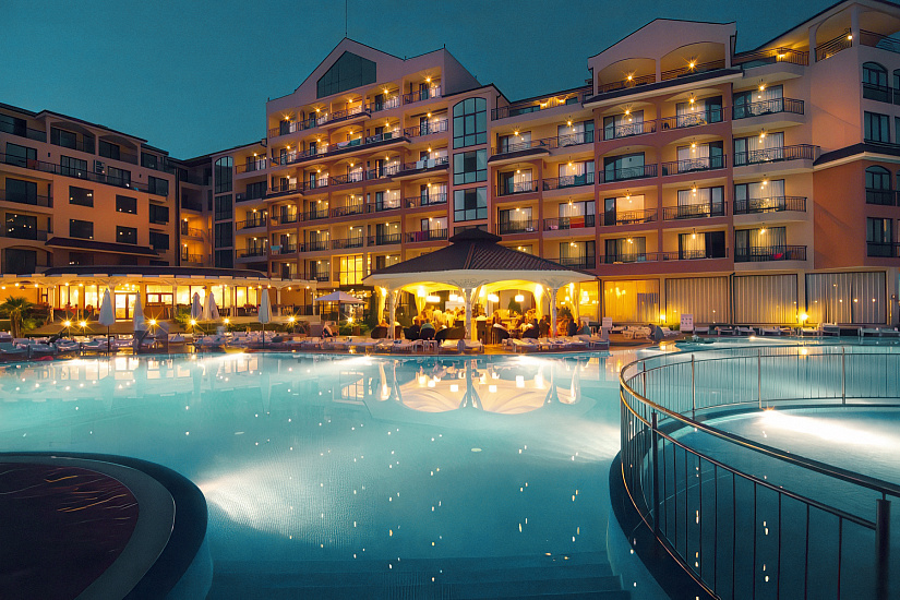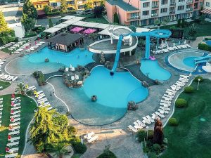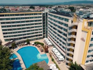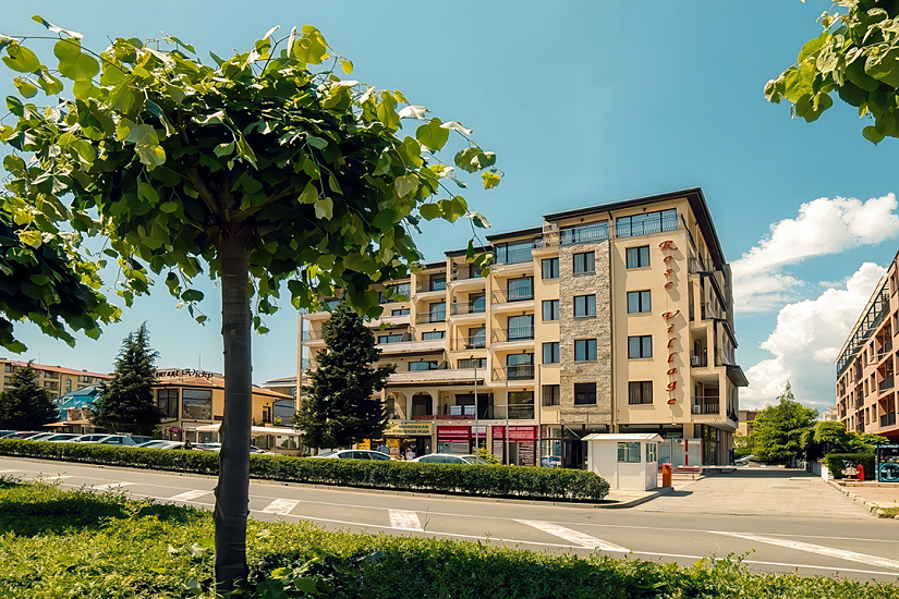 Расположение: находится в северной части курорта Солнечный Берег, недалеко от центра курорта, 250 м от пляжной полосы. За 10 минут от отеля можно дойти до аквапарка Экшн или центра курорта, до торгового центра Royal Beach менее 800 м.