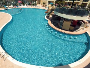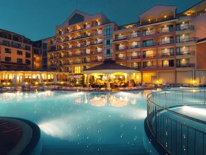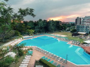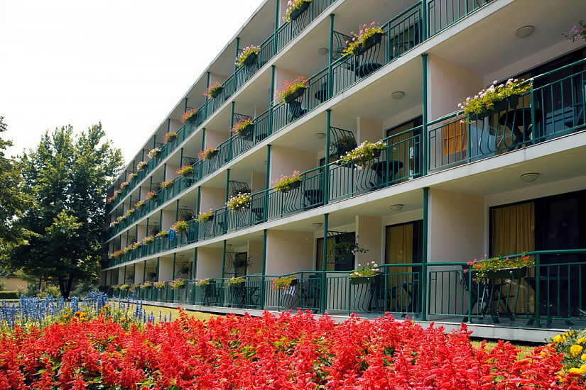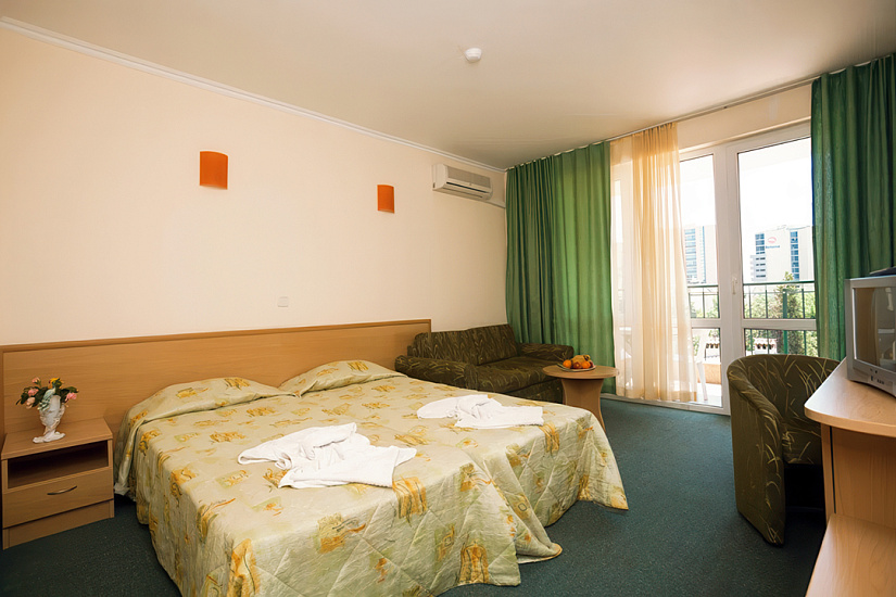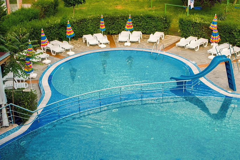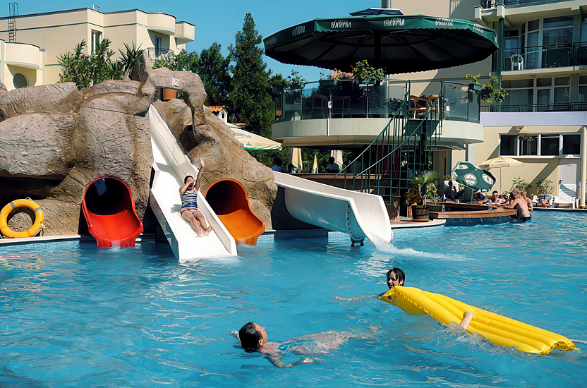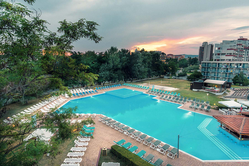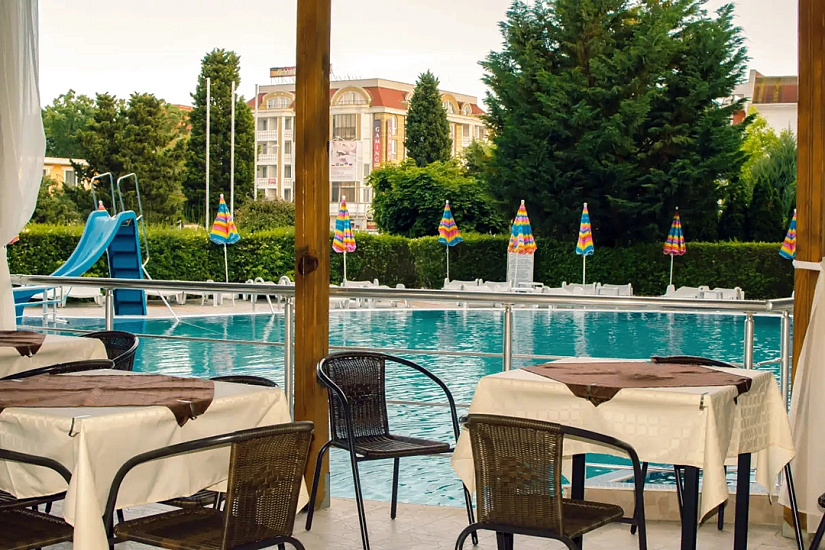 Инфраструктура отеля: Основной ресторан, лобби бар, бар у бассейна, открытый бассейн с детским отделением, лежаки и зонтики возле бассейна, настольный теннис, дартс, анимация для детей 4-12 лет (детские игры и развлечения, мини-дискотека) 6 дней в неделю (BG, RU, EN), детский клуб, детские стульчики в ресторане, детские кроватки в номерах – платно, комната для хранения багажа, обмен валюты, открытый паркинг — 12,5 евро/день. Спортивная анимационная программа для взрослых (спортивные мероприятия, игры и легкие вечерние развлечения, шоу) 6 дней в неделю.