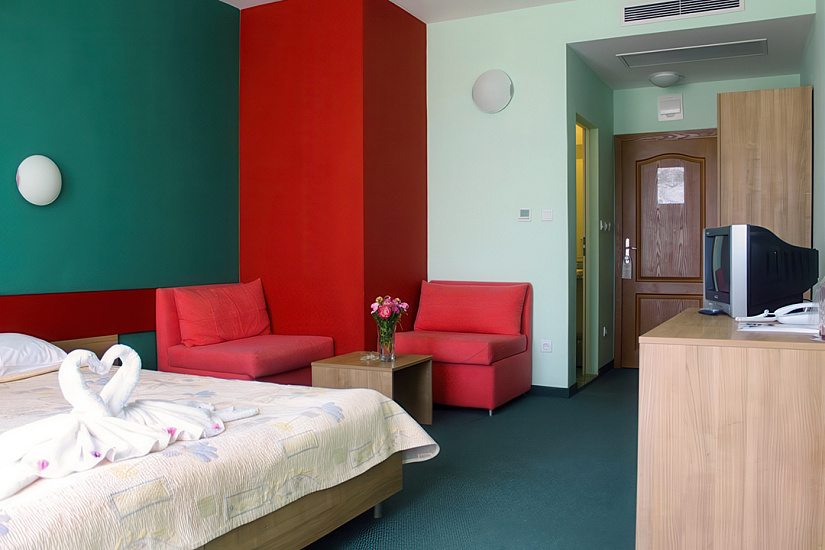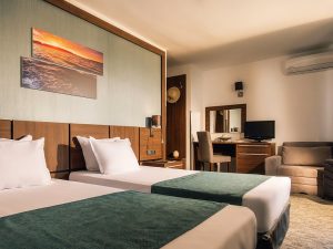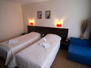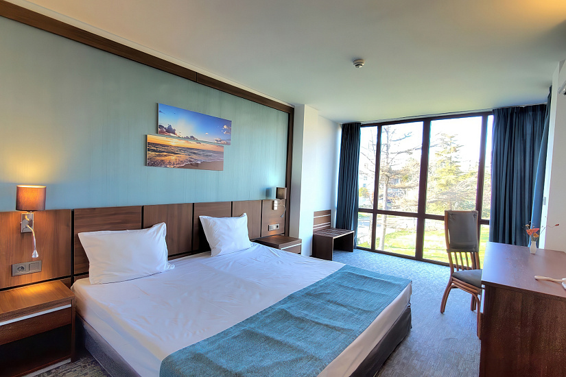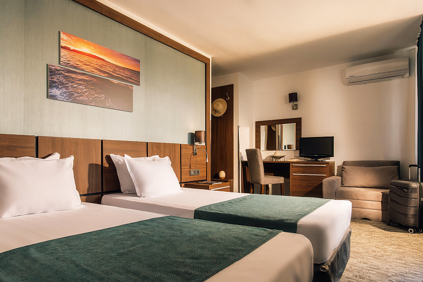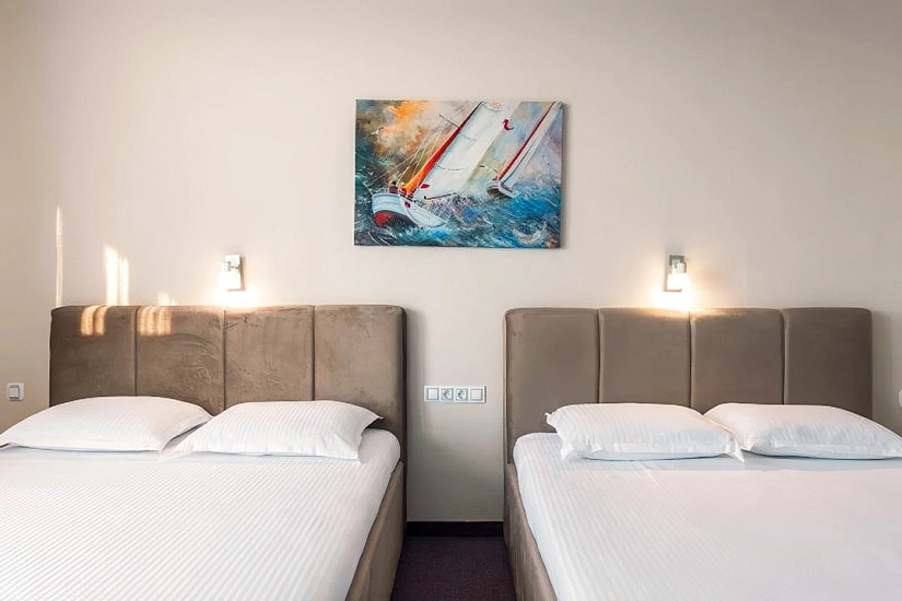 - DBL ~20 кв.м: 2 односпальные кровати + 1 доп. кровать (раскладное кресло). Макс. размещение: 2 взр. + 1 реб. или 3 взр.