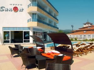 - Отель «Поморие Сан» 3*, все включено, 1-ая линия — 2 взрослых 1475 EUR, 2 + 1 ребенок (до 13 лет) 1850 EUR, 2 + 2 ребенка (до 13 лет) 2525 EUR