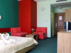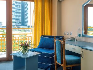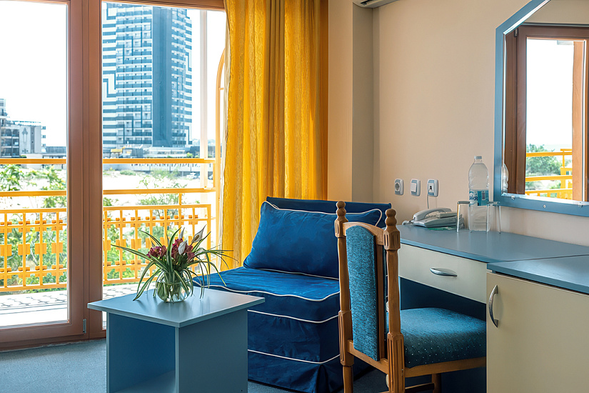 Номерной фонд: кондиционер, TV, WC (душ), мини-бар, телефон, Wi-Fi платно, балкон.