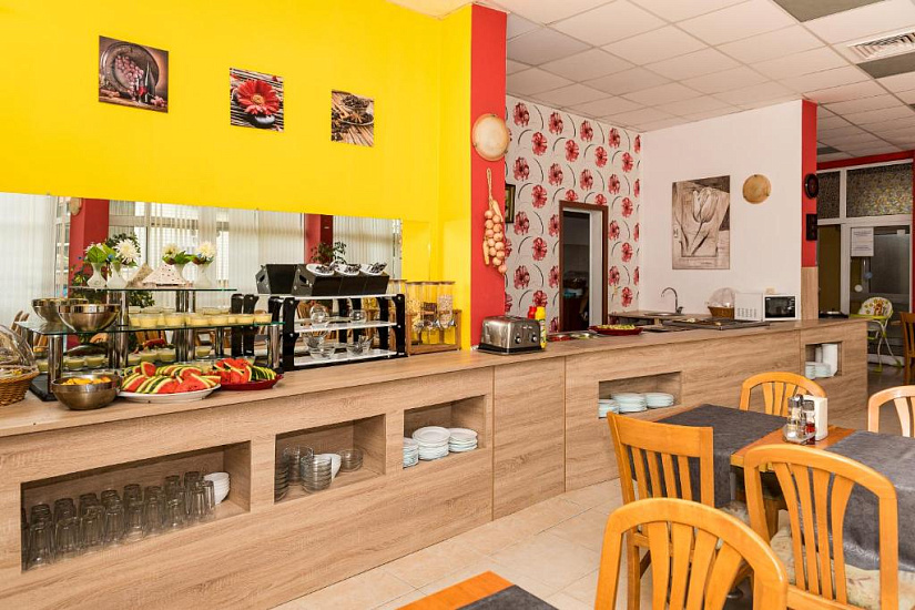 Болгарские алкогольные и безалкогольные напитки доступны во время основных приемов пищи в баре ресторана отеля. Алкогольные напитки: вино (белое или красное), разливное пиво, водка, ракия, джин, виски, мента, бренди, мастика с 11:00 до 22:00. Безалкогольные напитки: чай, кофе, сок, вода и газированные напитки из автоматов с 08:00 до 22:00. После 22:00 все напитки за доплату.