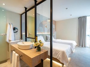 - Family Room ~55 кв.м: 2 комнаты, 2 односпальные кровати в первой комнате и двуспальная кровать + 1 доп. кроваnь в второй комнате. Макс. размещение: 4 взр. + 1 ребенок или 5 взр.
