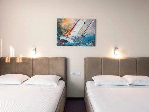 - DBL ~ 20 кв. м: 2 односпальные кровати (можно соединять) + 2 доп. кровати (раскладной диван). Макс. размещение: 2 взр.+ 2 детей или 3 взр. + 1 ребенок.