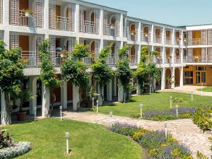 - Отель «Кипарисите» 4*, завтрак + ужин — 2 взрослых 1260 EUR, 2 + 1 ребенок (до 12 лет) 1635 EUR, 2 + 2 ребенка (до 12 лет) 2135 EUR