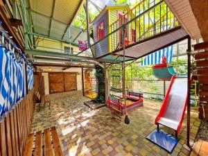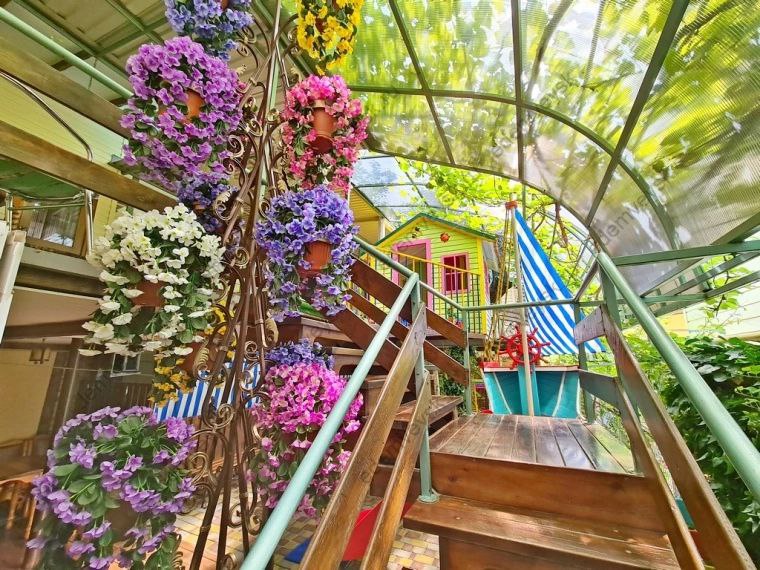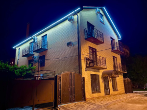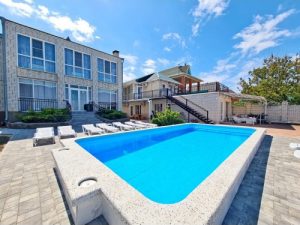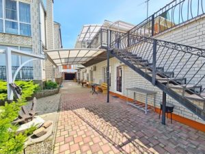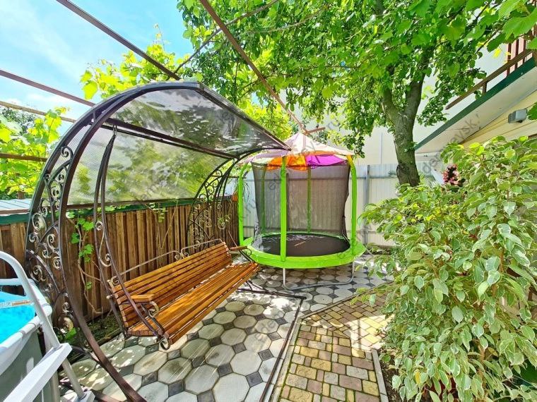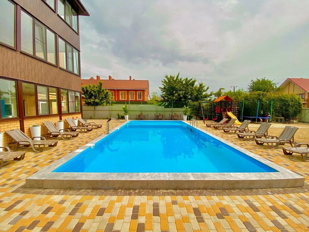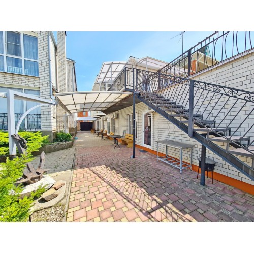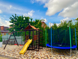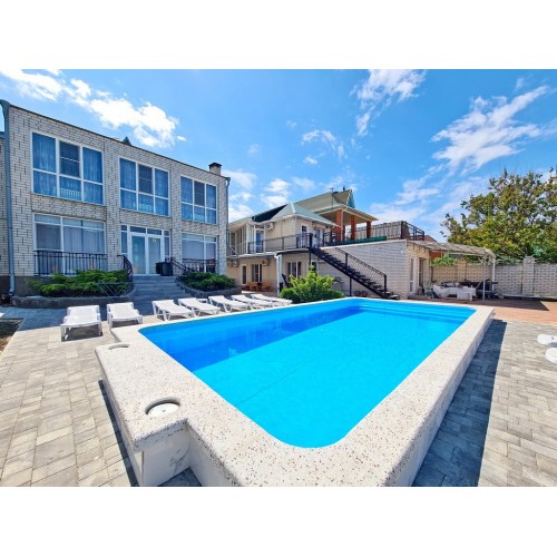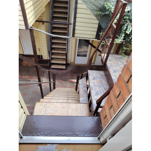 Услуги: подогреваемый бассейн с детской зоной, зона отдыха во дворе, мангальная зона, детская площадка, гладильная доска, утюг, на общей кухне-веранде на каждом этаже установлена стиральная машинка и сушилка для белья, уборка в номере по требованию, смена белья и полотенец через 4-5 дней, Wi-Fi на территории и в номерах.