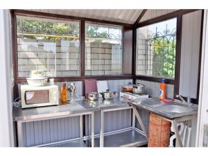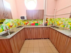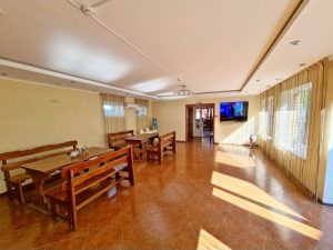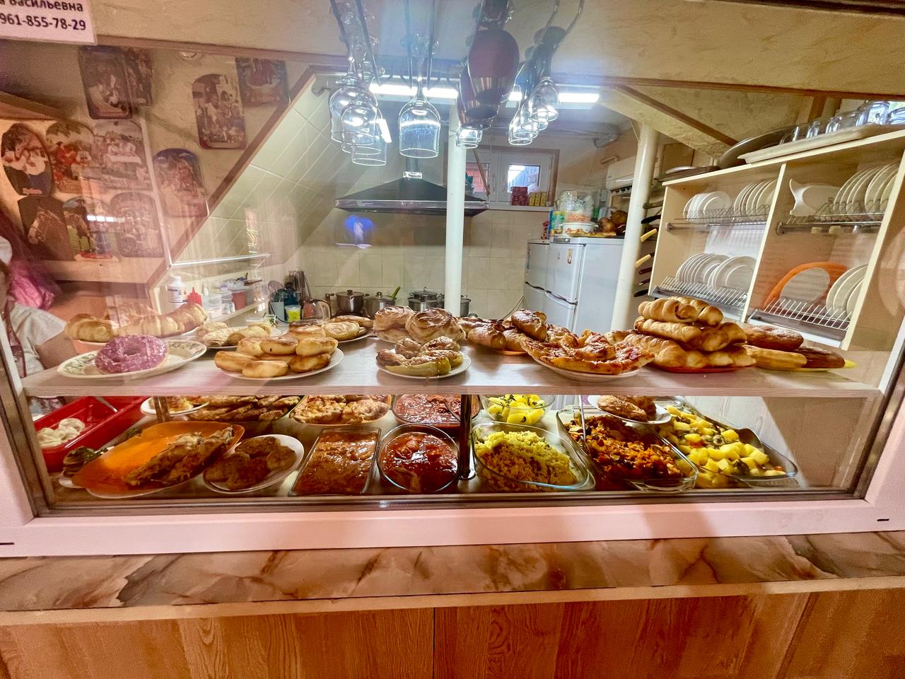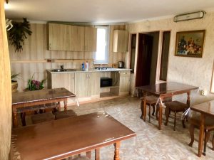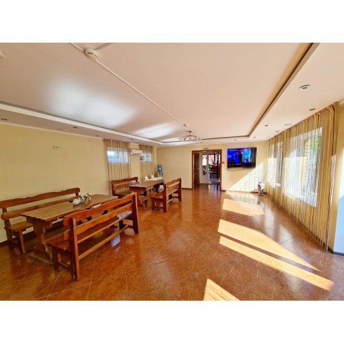 Питание: на первом этаже гостевого дома столовая с очень вкусными завтраками, обедами и ужинами. Очень большой ассортимент блюд. На каждом этаже есть общая оборудованная всем необходимым кухня-веранда (без плиты): чайник, микроволновая печь, стол, стулья, мойка, необходимая посуда.