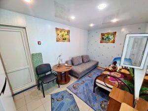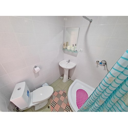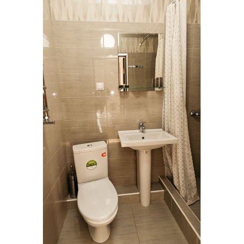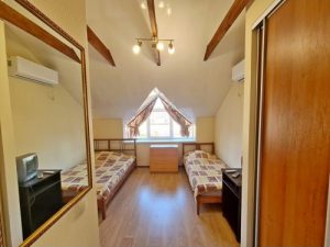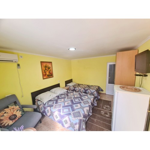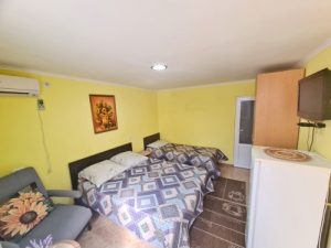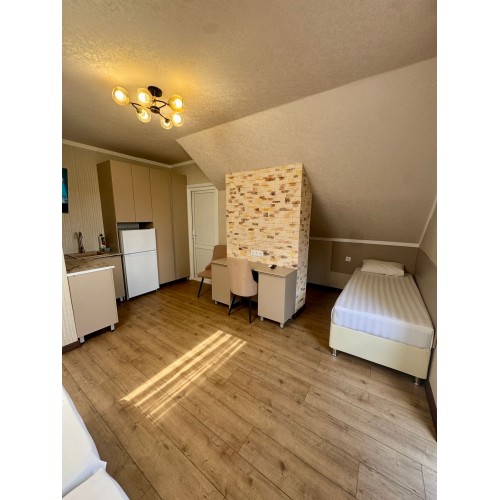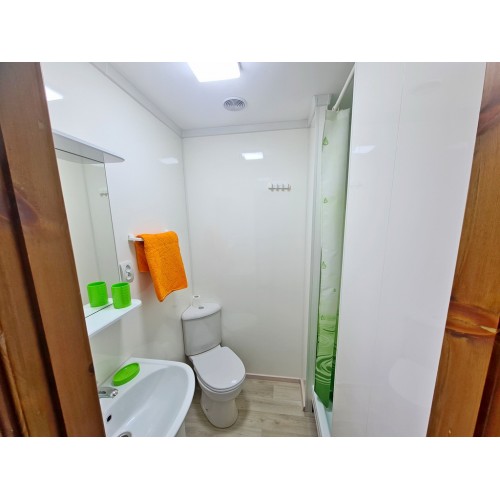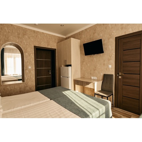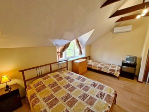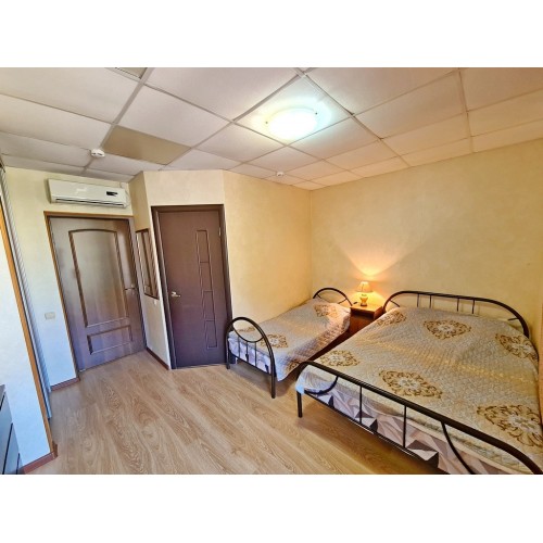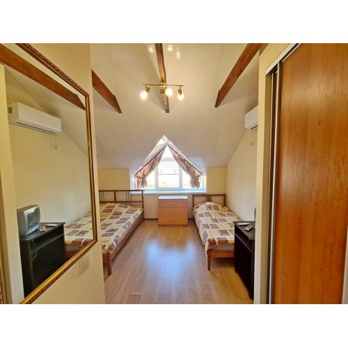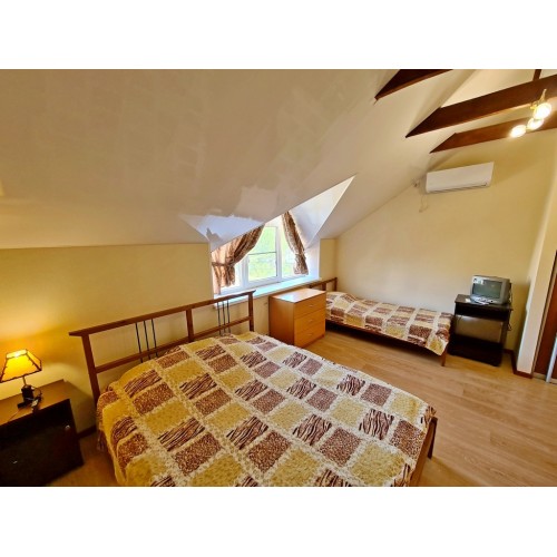 - 3-х (можно как 2-х) местный номер со всеми удобствами на 1 этаже: односпальная и двуспальная кровати, необходимая мебель, сплит-система, телевизор, холодильник, санузел с душевой кабиной, фен