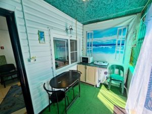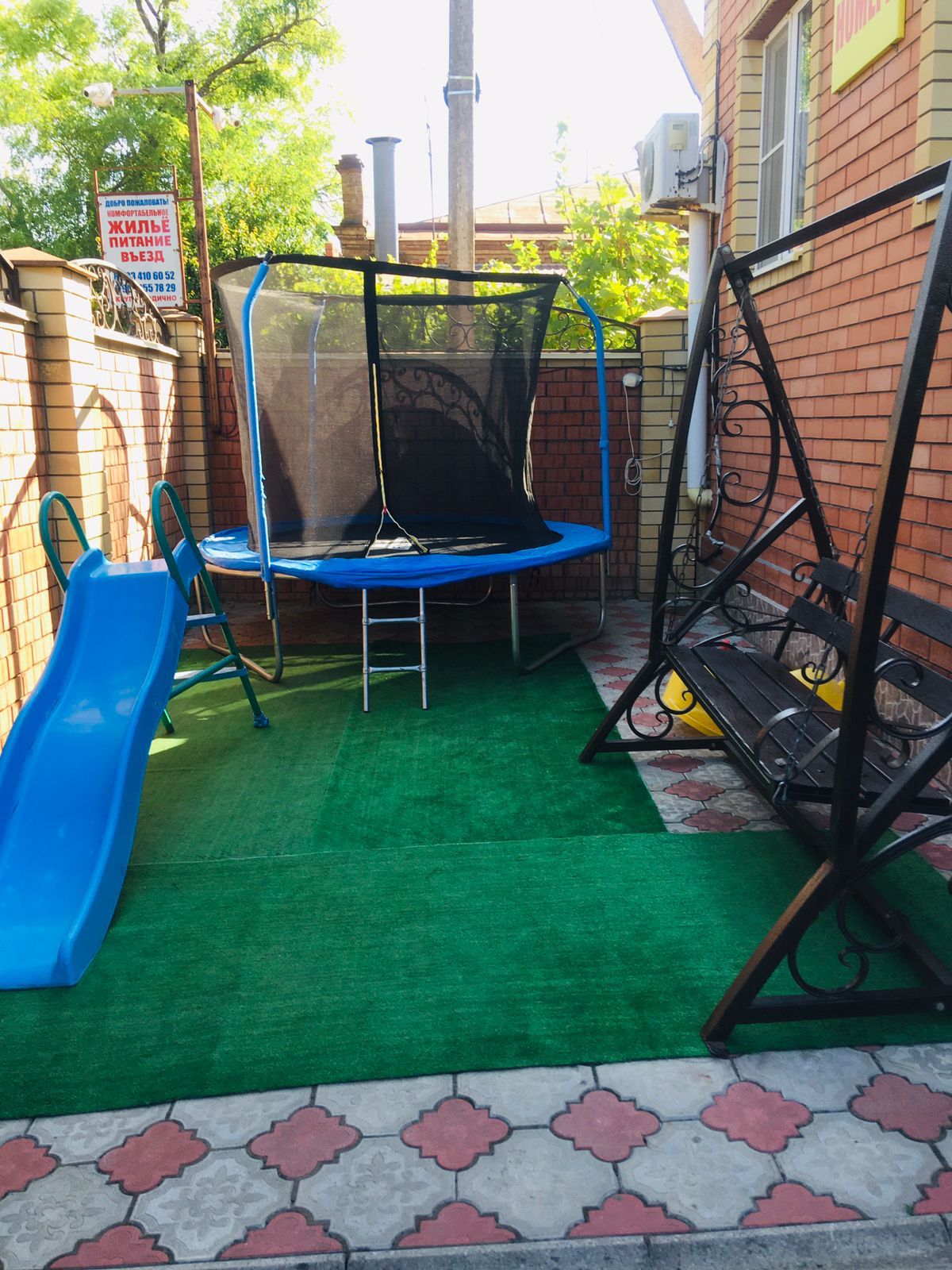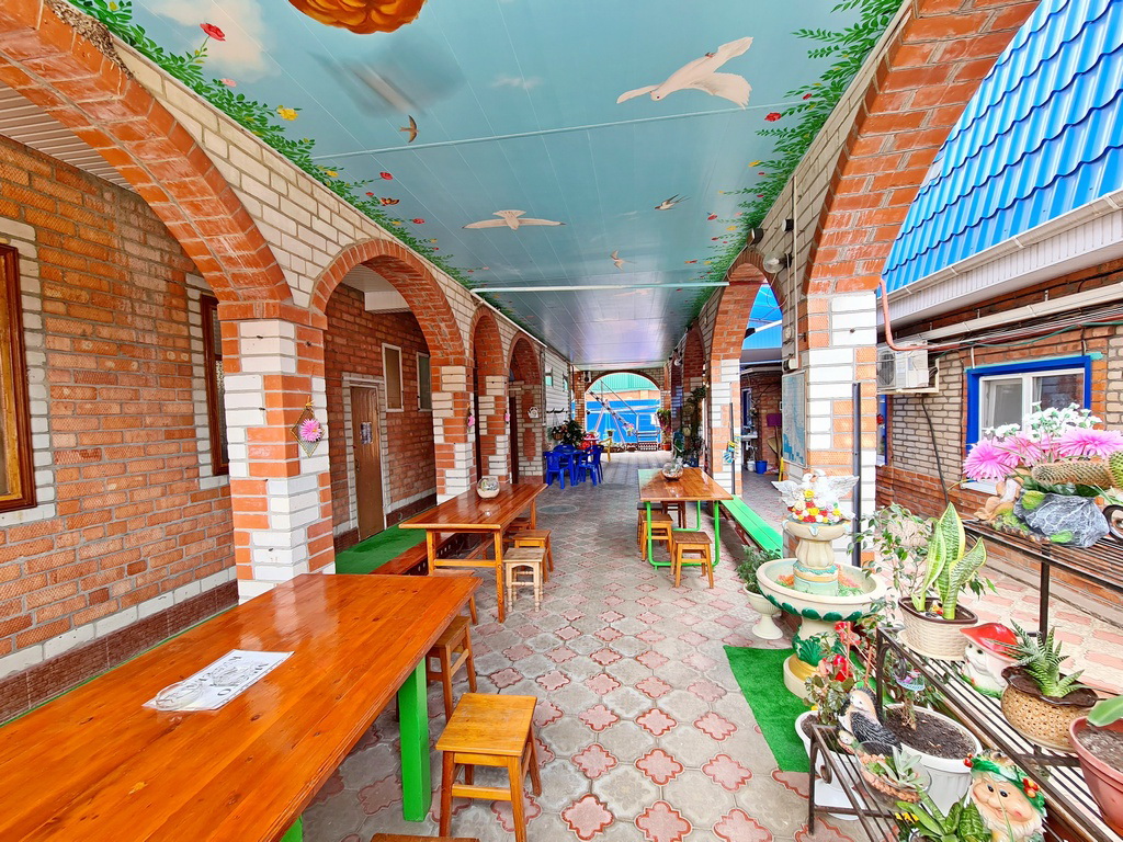 Услуги: холодная и горячая вода круглосуточно, уборка в номере самостоятельно, смена белья и полотенец через 5 дней, Wi-Fi на территории и в номерах. Детская площадка: батут, качели, песочница, игрушки, по запросу предоставляется прогулочная коляска. Установлена стиральная машинка, пользование бесплатно. Курение в специально отведенных местах!