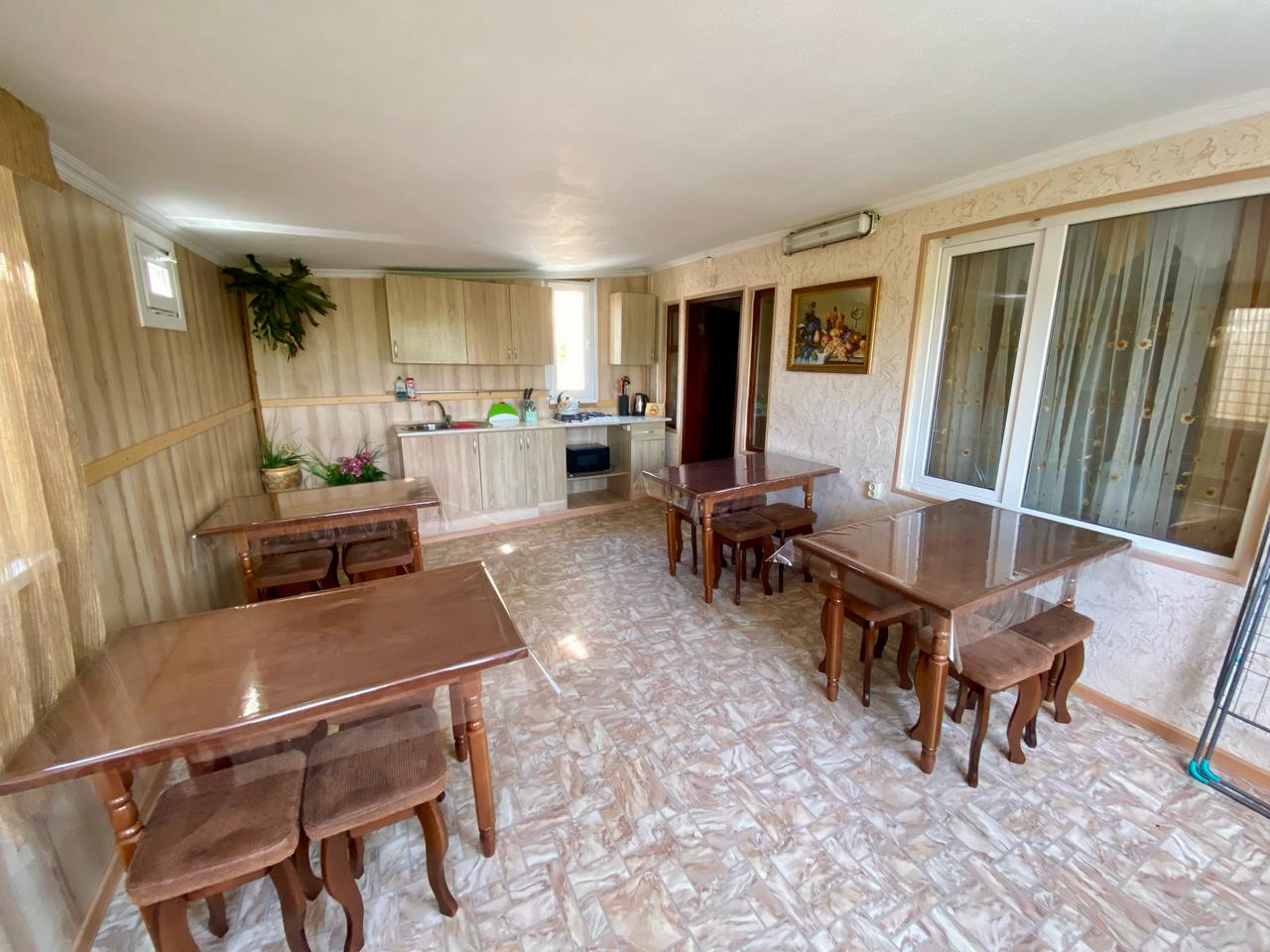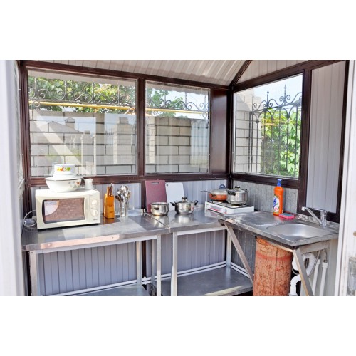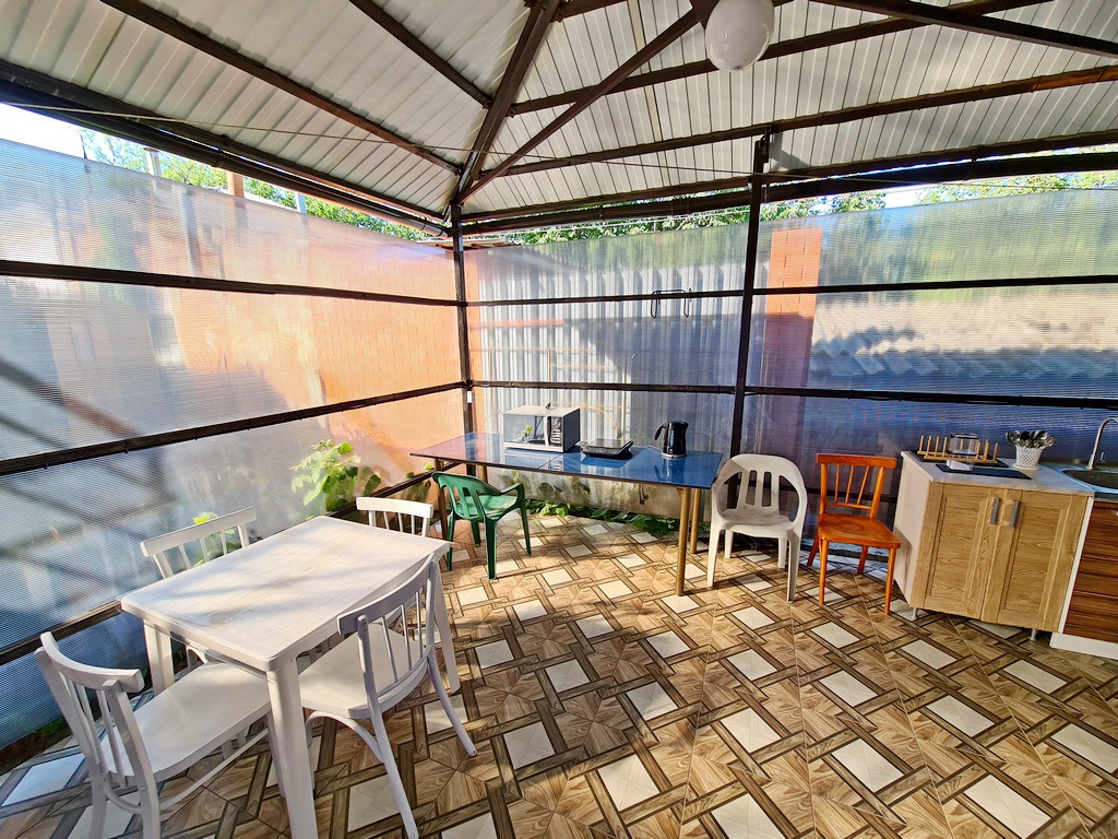 Питание: на территории гостевого дома имеется оборудованная всем необходимым кухня (мойка, газовая плита, микроволновка, набор посуды). Мангальная зона. В шаговой доступности множество кафе и ресторанов.