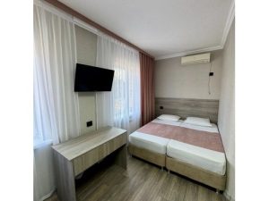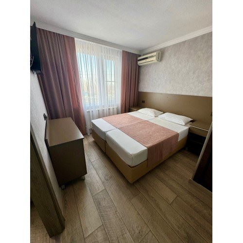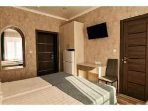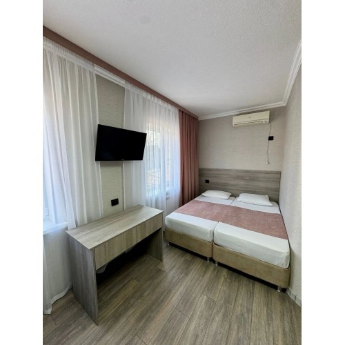 2-х местные номера: на 2 этаже, наружная лестница, небольшой по площади номер, раздельные кровати, необходимая мебель, санузел (совместный или раздельный, зависит от номера), телевизор, холодильник, чайник, фен, кондиционер.