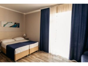 Водник № 22: 8-я дорожка, 30 м от пляжа, 3-х и 4-х местные номера на 1-м этаже с допместом. Просторная комната, две односпальные и одна двуспальная кровати, кресло, тумбочка, шкаф, телевизор. Допместо — евро-раскладушка. На кухне необходимая мебель, кондиционер, холодильник, мультиварка, электроплита, микроволновка, чайник, посуда и водонагреватель. Совмещенный санузел: душевая кабина, раковина, зеркало, унитаз. Стиральная машина по запросу.