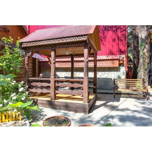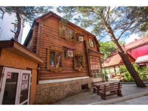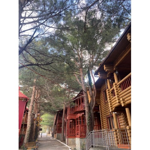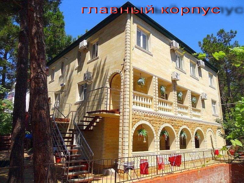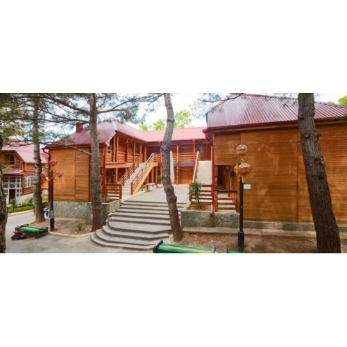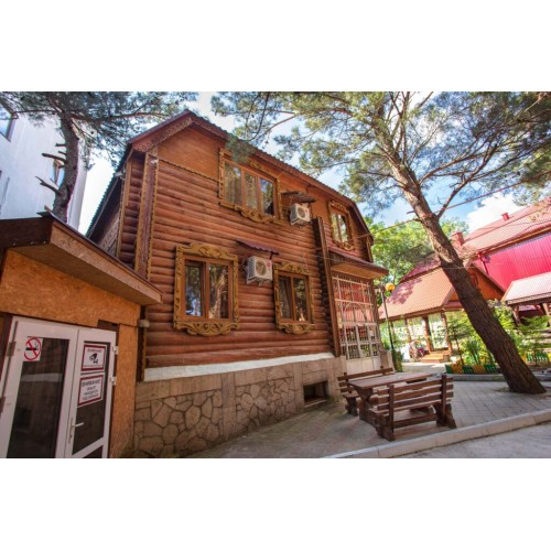 Расположен в экологически чистом сосновом бору в центральной части курорта, имеет выход на самые лучшие песчаные и галечные пляжи. Главное достоинство этого гостевого дома — то, что все построено из дерева, и благодаря этому Вы насладитесь прекрасным и чистым воздухом соснового бора! Прекрасный и живописный вид открывается из окон на парк и горы! Рядом расположен Сафари-парк.