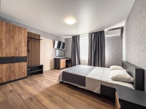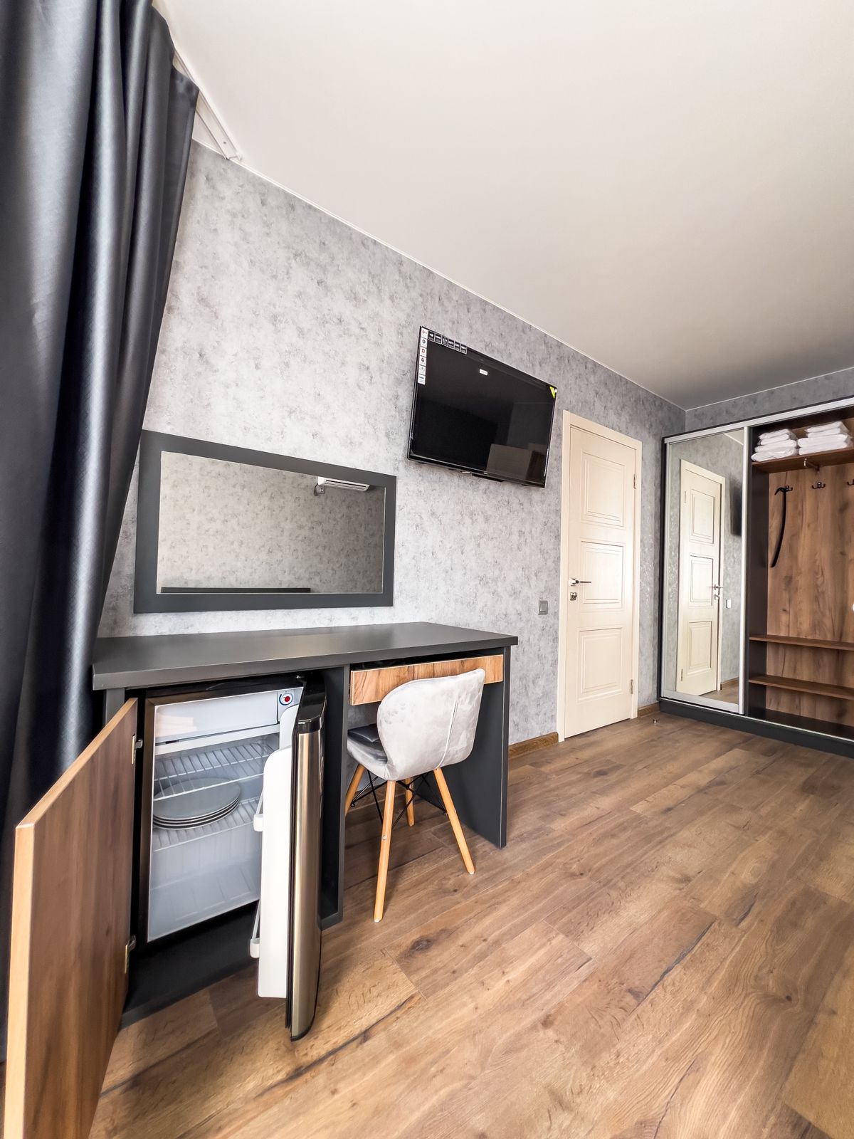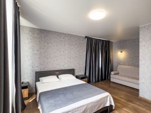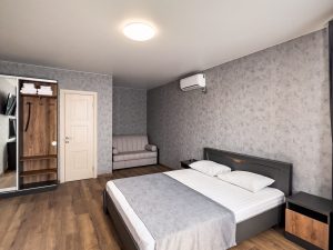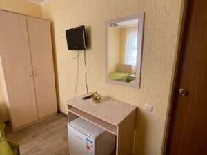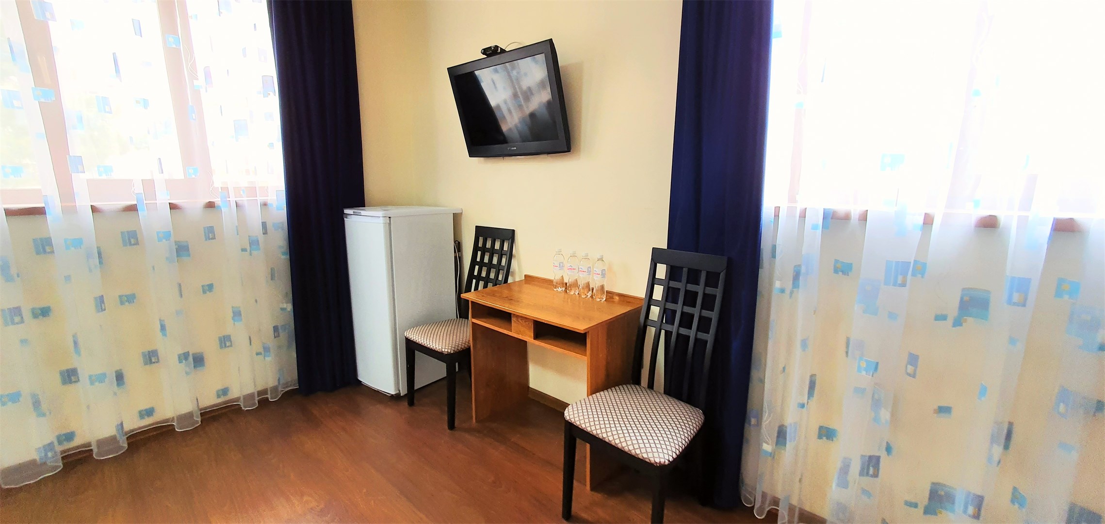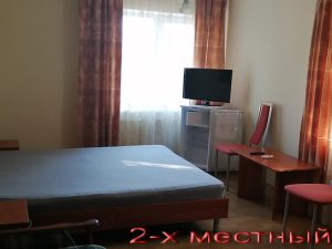 2-х местный номер со всеми удобствами: односпальные или двуспальная кровати, шкаф, стулья, прикроватные тумбочки, стол, зеркало, кондиционер, телевизор, санузел с душевой кабиной. Холодильник в номере или рядом у входа. Возможно допместо (кресло-кровать или раскладной диван). Возможно одноместное размещение.