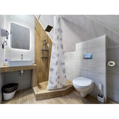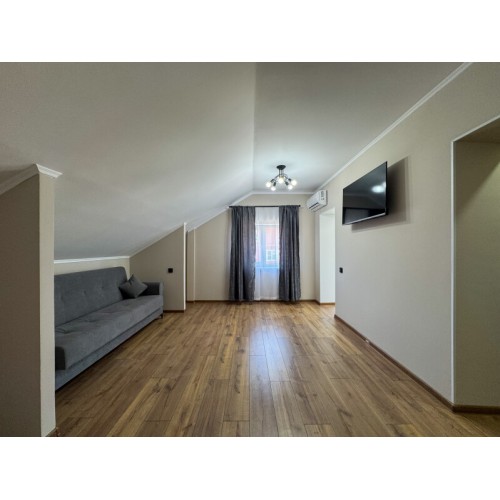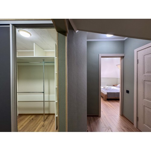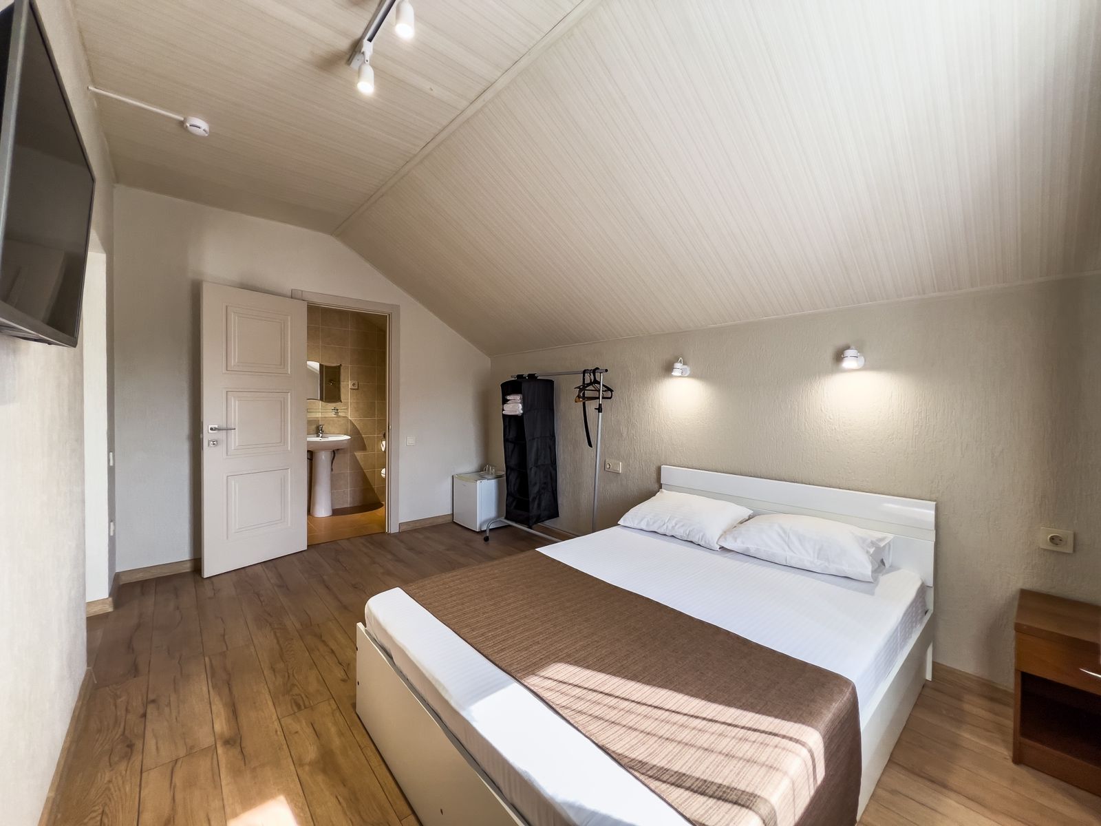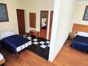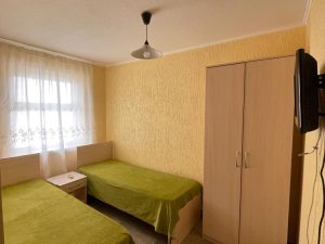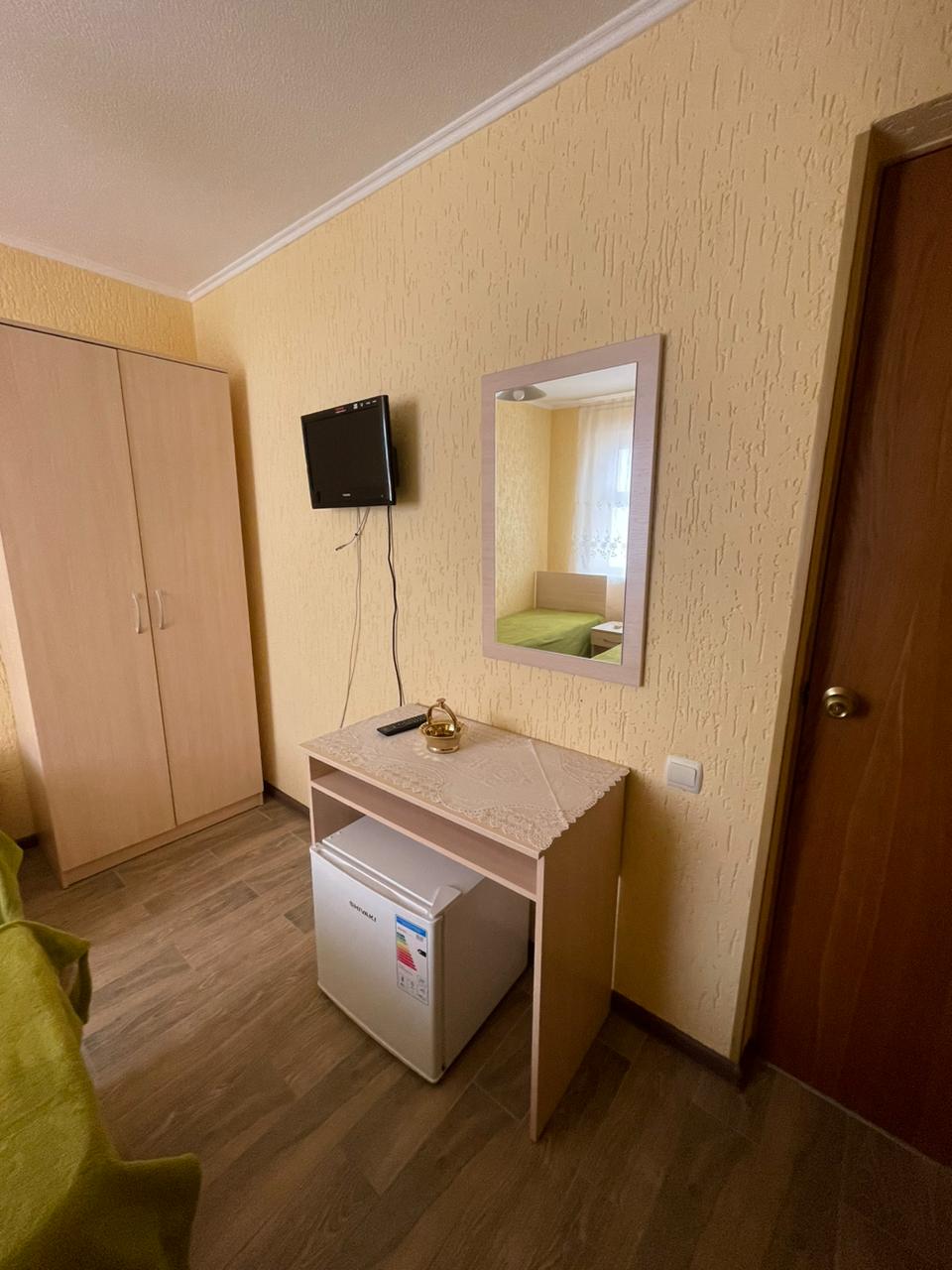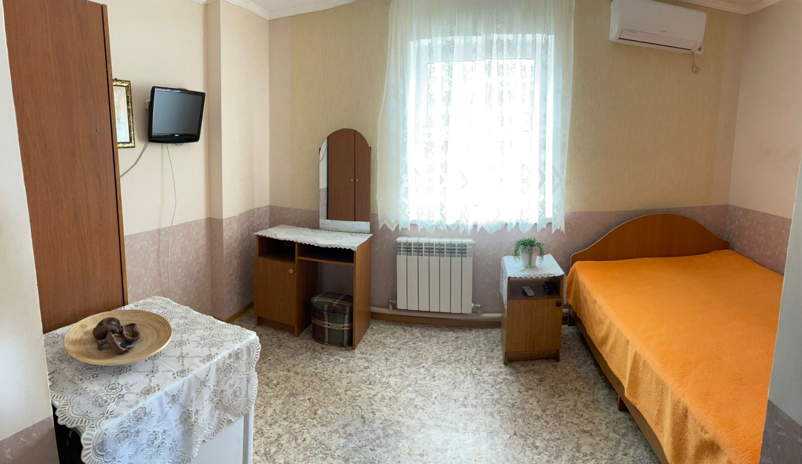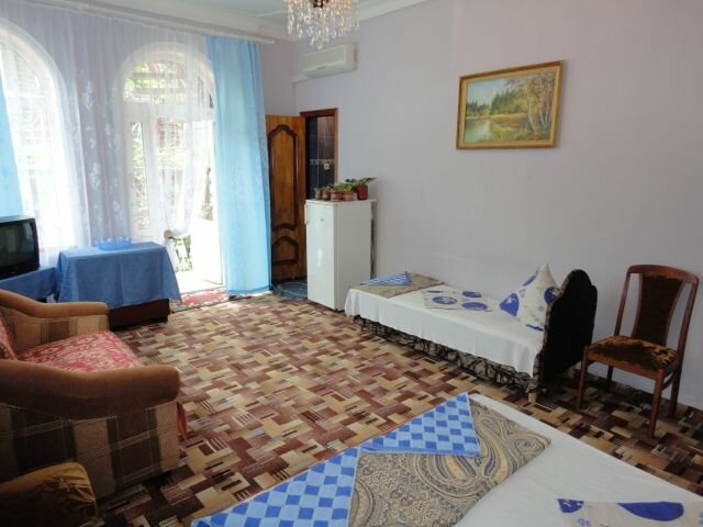 3-х-4-х местный номер со всеми удобствами: односпальные и двуспальная кровати, раскладной диван-кровать или раскладное кресло-кровать, шкаф, стулья, прикроватные тумбочки, стол, вешалка, зеркало, кондиционер, телевизор, санузел. Есть номер со своей кухней (под запрос), холодильник. Возможно допместо (кресло-кровать или раскладной диван). Есть возможность запросить семейные номера из двух комнат, отдельная терраса.
