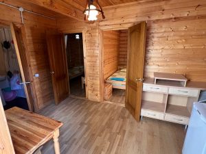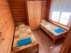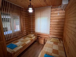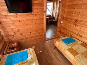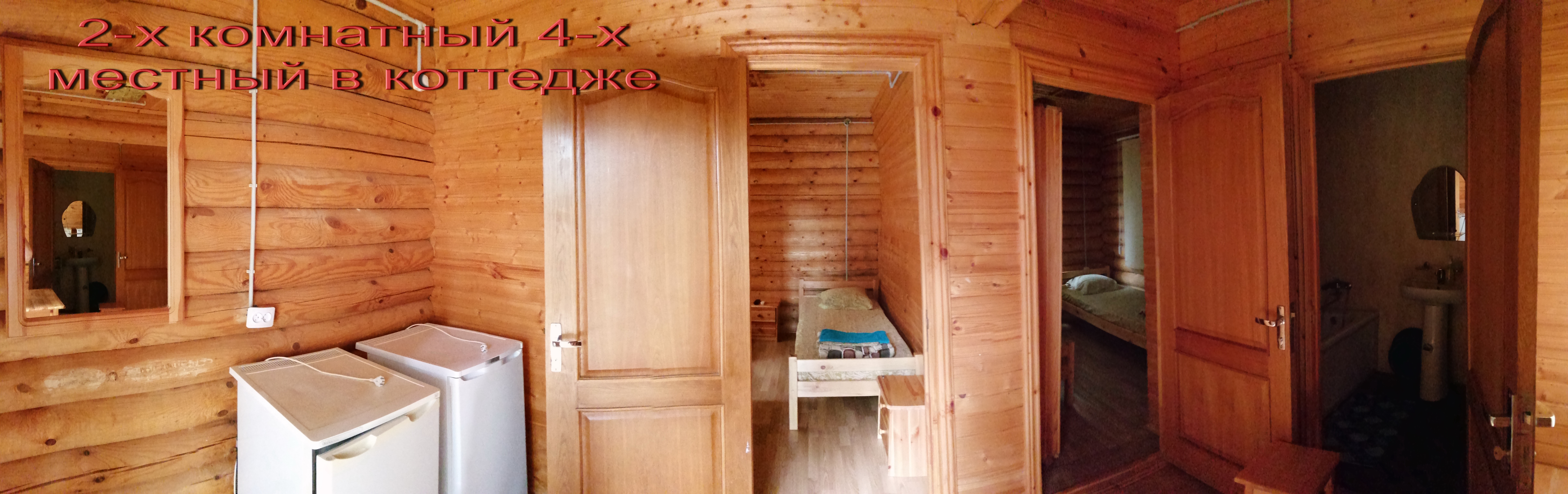 • 2-х комнатные 4-х местные номера со всеми удобствами (на 1 этаже коттеджей): две раздельные спальни, в каждой по две кровати, тумбочки, шкафы, телевизоры, кондиционеры, общий холл с обеденной зоной и холодильником, санузел, полотенца. Напротив входа в номер расположена зона отдыха (стол+скамейки). Недалеко общая кухня. Возможность установки допместа — под запрос.