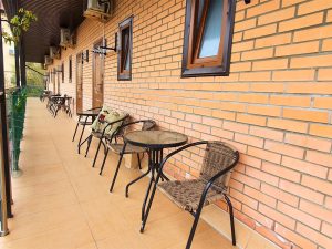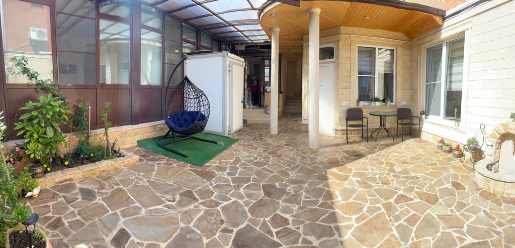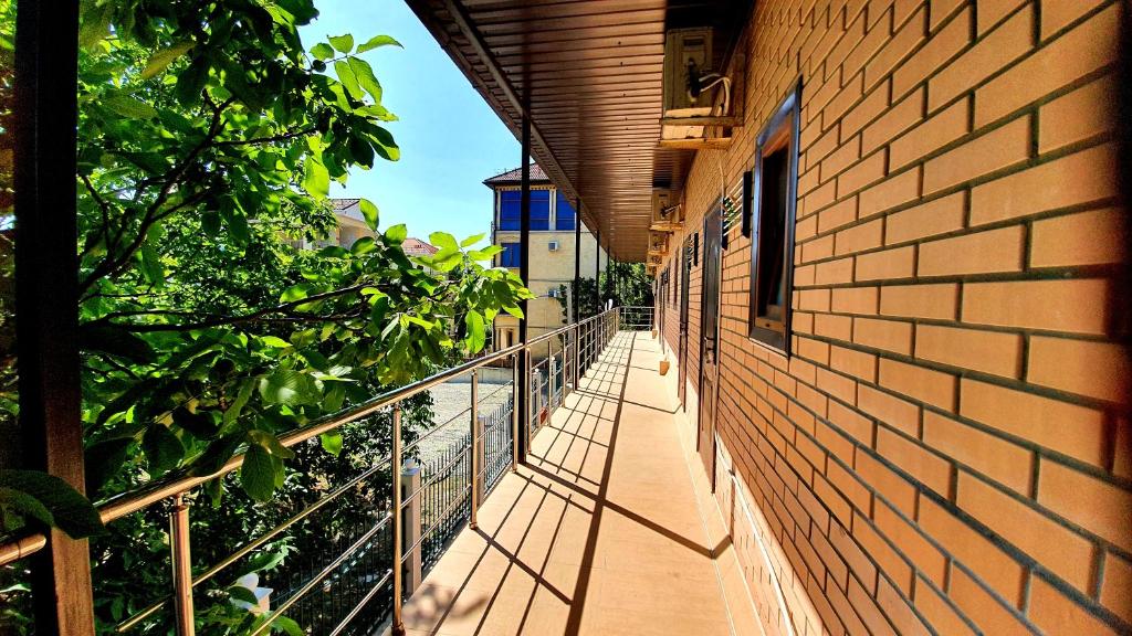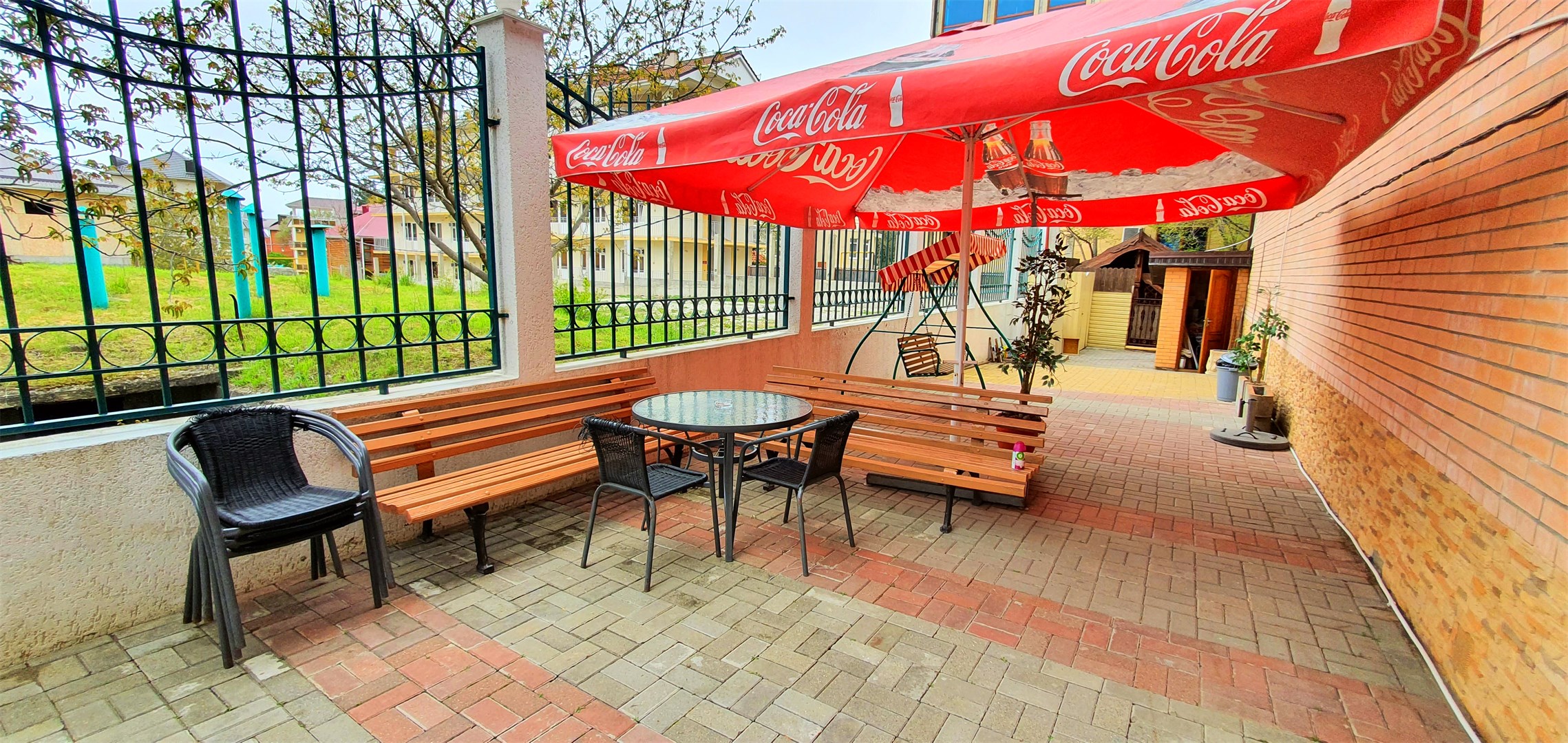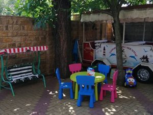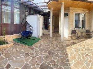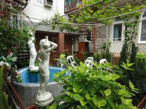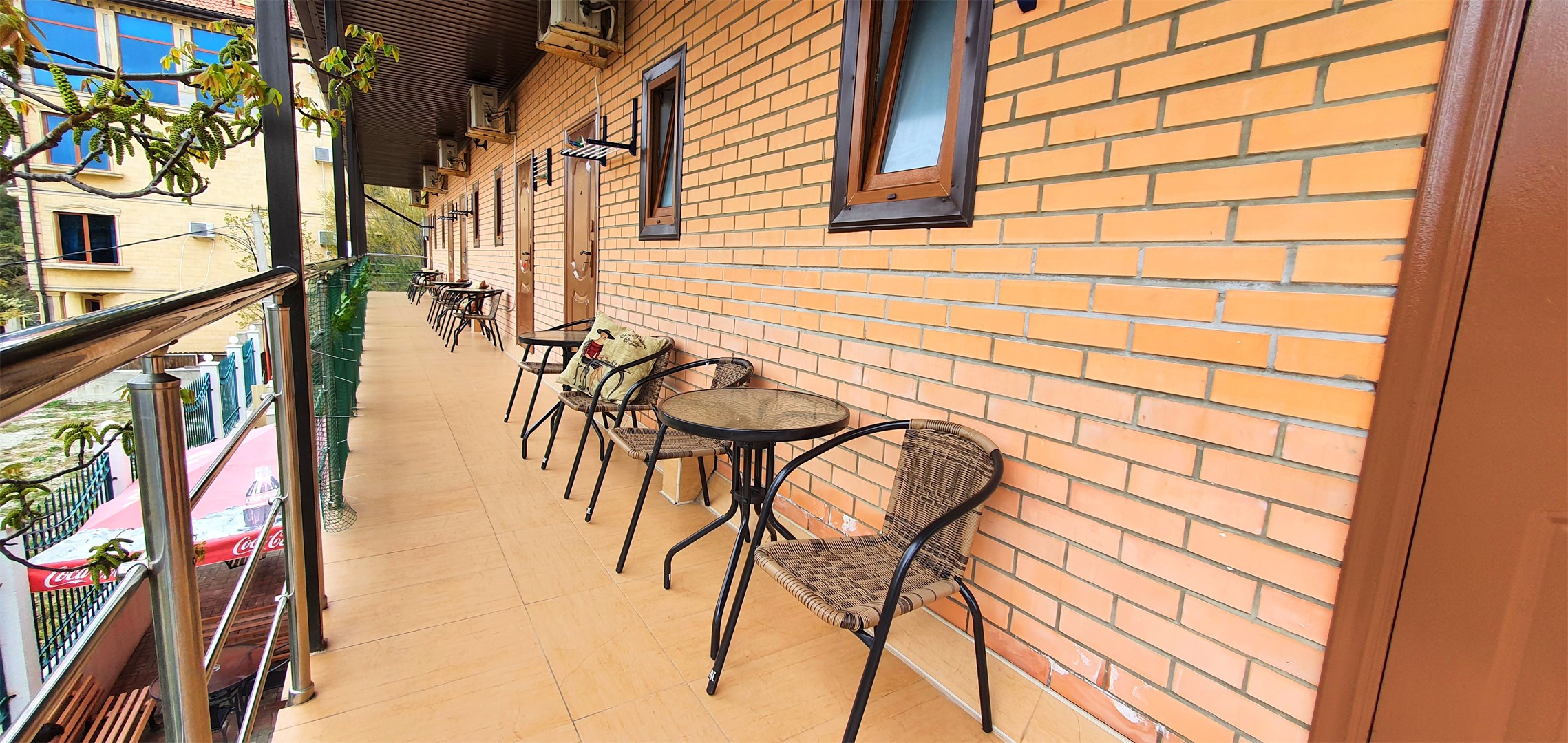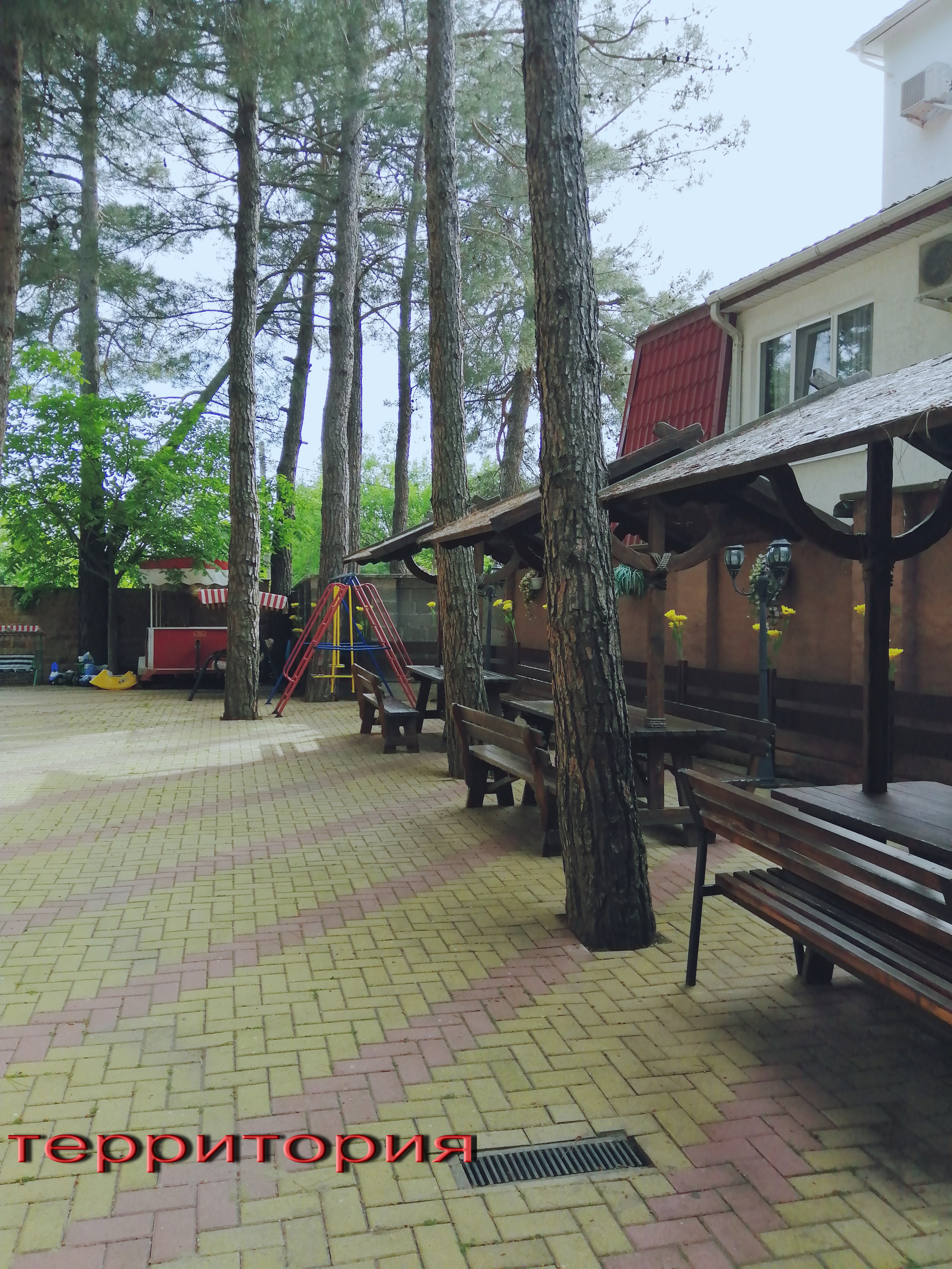 Услуги: холодная и горячая вода круглосуточно, комната для стирки и глажки (гладильная доска, утюг, стиральная машинка — 100 рос. руб.), уборка в номере каждые 5 дней, смена белья через 5 дней, мангал во дворе (бесплатно), WI-FI в номерах и общественных местах, камера для хранения багажа. Бассейн под открытым небом 7/3м с современной очисткой воды. Благоустроенный внутренний двор: две беседки, шезлонги, столы, стулья, батут, качели, детская площадка.