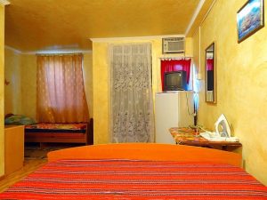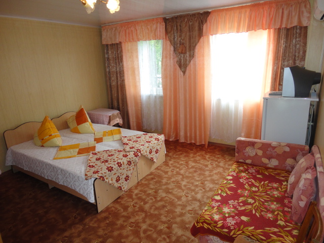 • 2-3-х местные номера со всеми удобствами (возможна установка допместа — кресло-кровать или диван-кровать): душ или ванная, туалет, телевизор, холодильник, кондиционер, необходимая мебель, москитные сетки, полотенца. В некоторых 3-х и 4-х местных номерах, расположенных на 2-м этаже в коттедже, вход в санузел с балкона!