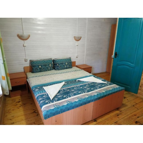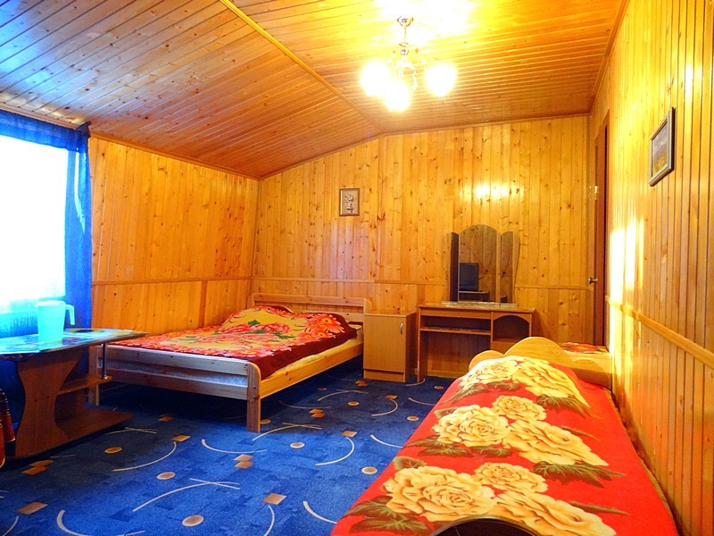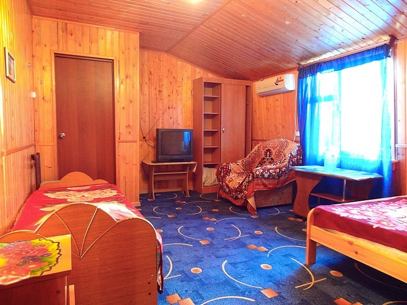 Размещение в коттеджах на просторной уютной зеленой территории. 2-3-4-х местные номера со всеми удобствами: небольшие по площади, простой интерьер, в номере сплит-система (кондиционер), телевизор, холодильник, чайник, индивидуальный санузел, вся необходимая мебель. В этом сезоне заменили ламинат в номерах.