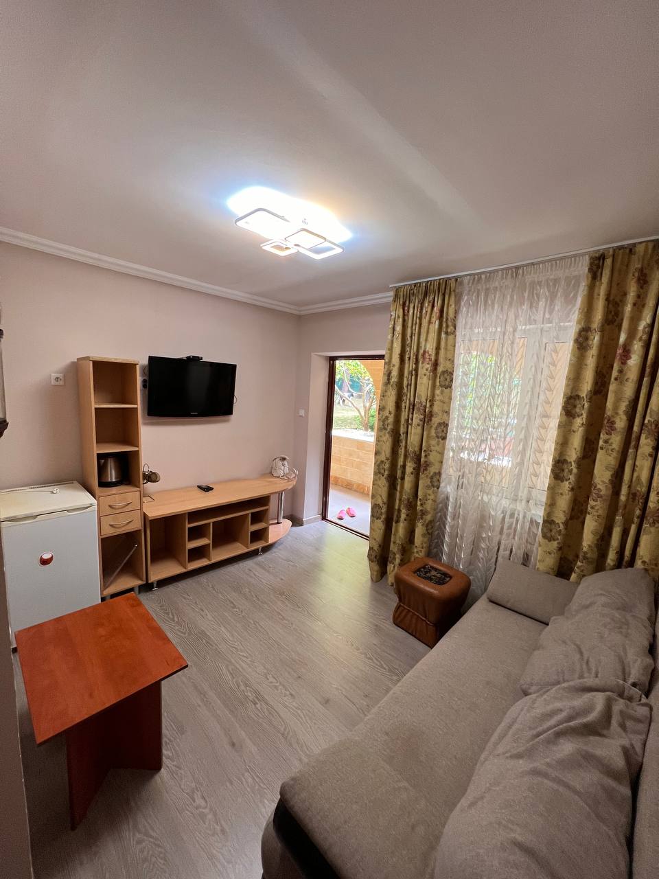 Услуги: холодная и горячая вода круглосуточно (своя скважина), гладильная доска + утюг (бесплатно), сушилка для белья (бесплатно), уборка в номере по требованию, смена белья через 5-7 дней, Wi-Fi бесплатно.