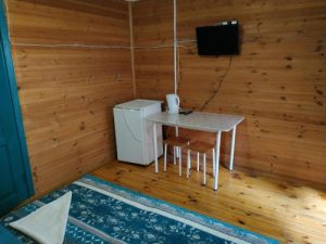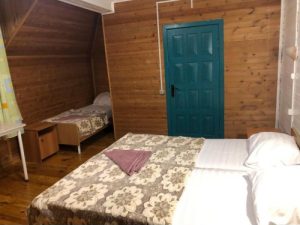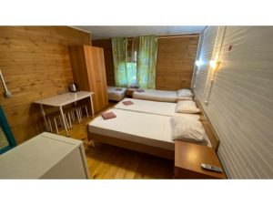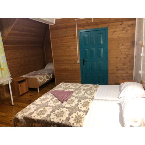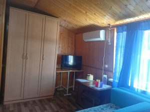 Размещение в уютном современном коттедже. 2-3-х местный номер со всеми удобствами: небольшие по площади, в номере односпальные или двуспальная кровати, шкаф, стулья, прикроватные тумбочки, стол, зеркало, кондиционер, телевизор, санузел с душевой кабиной. Холодильник в номере или рядом у входа. Допместо не предусмотрено. Есть одноместное размещение.