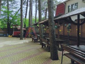 Услуги: холодная и горячая вода круглосуточно, гладильная доска + утюг (бесплатно), сушилка для белья (бесплатно), уборка в номере 1 раз за отдых, смена белья через 5-7 дней, Wi-Fi. Столики, детская зона. Большое количество зелени, сосны, расположенные под ними гамаки и столики располагают к комфортному отдыху. С территории гостиницы можно выйти в огороженную часть соснового леса, где можно устроить пикник (мангал).