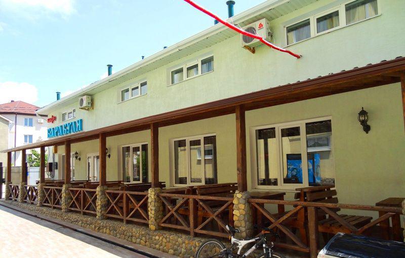 Пляжи: 2 пляжа в 450 м от гостевого дома (7-10 минут ходьбы), прямой спуск с набережной к пляжу: бесплатный необорудованный городской галечный пляж (есть расчищенные от гальки участки для входа в море) и оборудованный пляж пансионата «Приветливый берег» с мелкой галькой (вход бесплатный, лежаки платно). Рядом есть несколько столовых и кафе. По дороге на пляж есть магазины, небольшой рынок, столовая, кафе и ресторанчики, палатки с сувенирами и пляжным инвентарем, аттракционы и многое другое.