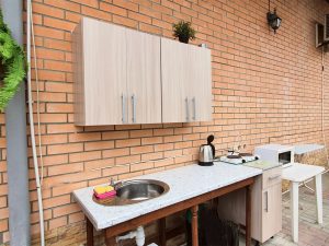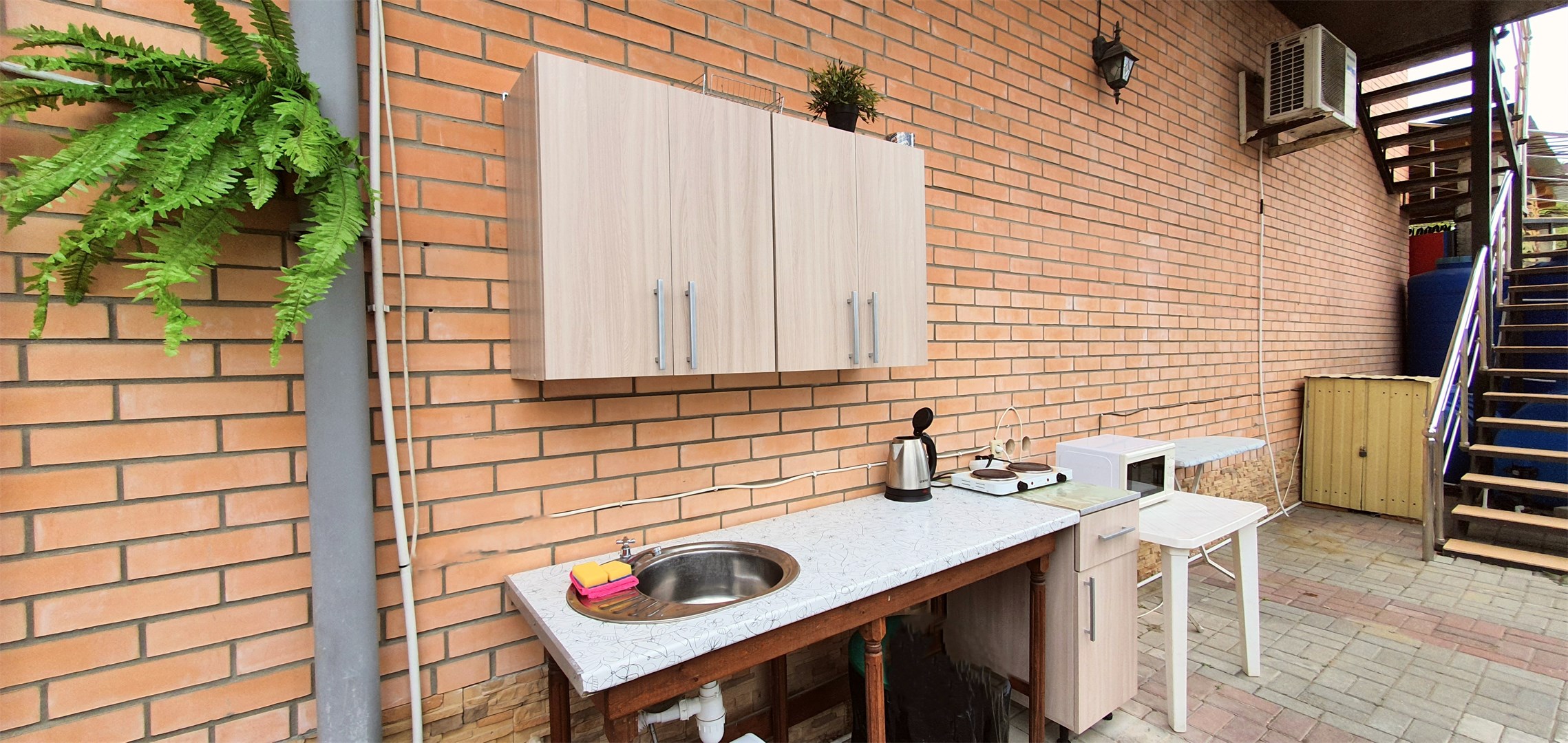 Услуги: холодная и горячая вода круглосуточно (своя артезианская скважина), гладильная доска + утюг (бесплатно), сушилка для белья (бесплатно), стиральная машинка (бесплатно), уборка в номере по требованию, смена белья через 5-7 дней, мангал во дворе (бесплатно), Wi-Fi бесплатно.