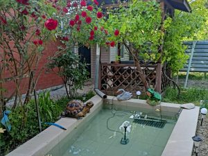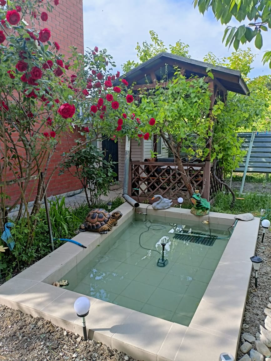 Размещение в уютном современном коттедже c зеленой территорией, зоной отдыха у водоема с фонтаном.