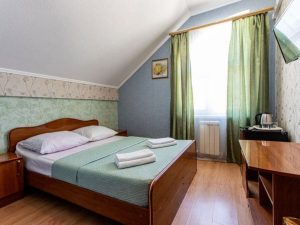 - 2-х местный «Стандарт» с раздельными кроватями: 2 места (площадь 12 кв. м), 1 комната, душ и туалет в номере, кондиционер, телевизор, холодильник, балкон. Нежаркий номер, отлично подойдёт тем, кто не любит включать кондиционер. Свой отдельный вход и терраса с навесом, капитально огороженная от других отдыхающих, со столом и стульями перед номером. Новый дизайн в санузле, немецкая сантехника.