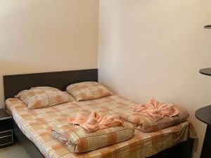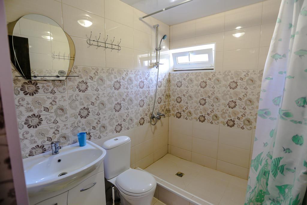 - 2/3-х местные номера эконом: 2/3 спальных места, 12 кв. м, TV, набор посуды, полотенца, вентилятор, душ и туалет на этаже